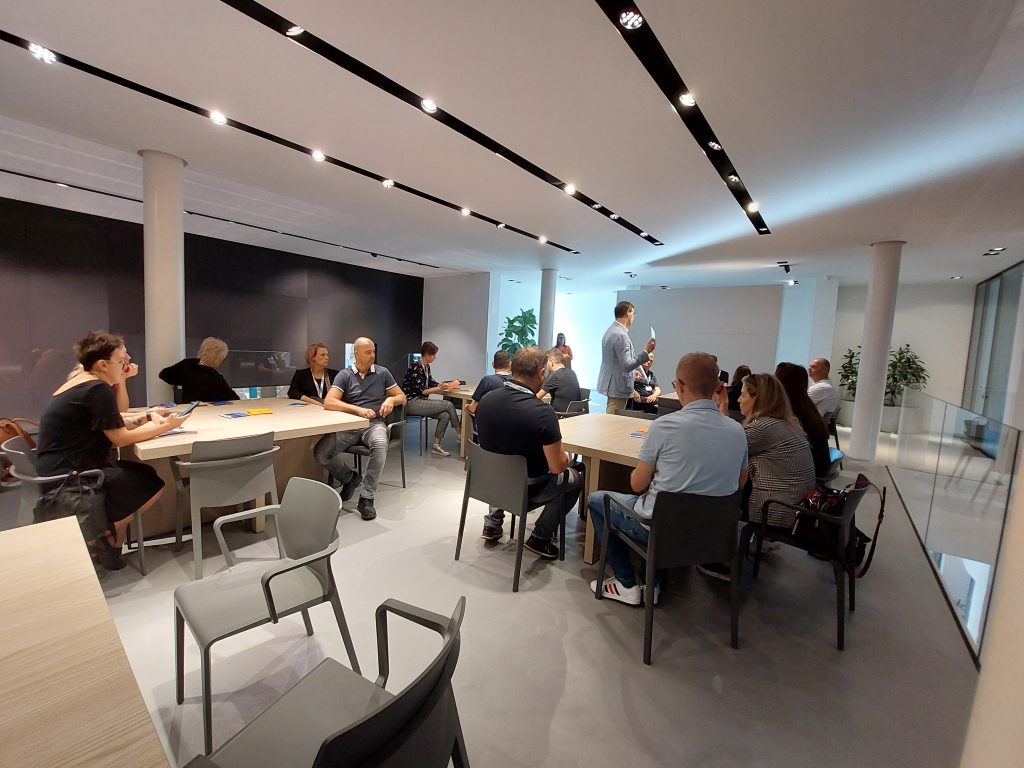 Na prvi takšni strokovni ekskurziji v Cleaf so se nam pridružile stranke in arhitekti, popeljali smo se v še »neznan« svet, drugačnih struktur, drugačnega showrooma in celotnega koncepta same proizvodnje.