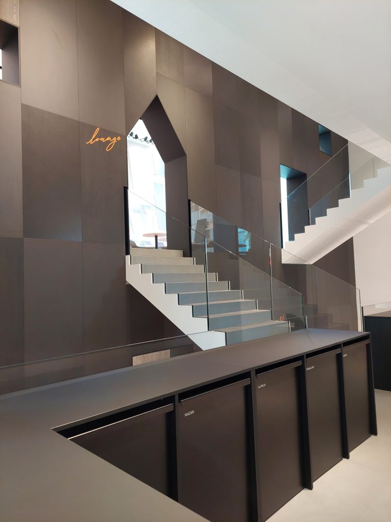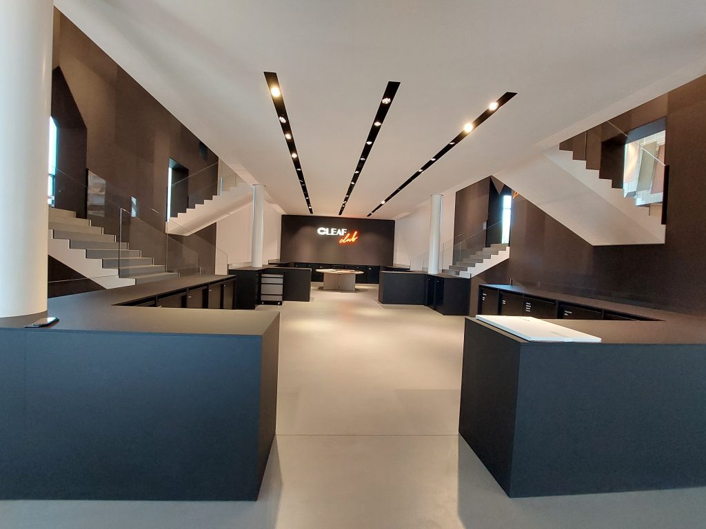 Obisk Cleaf cluba, kot je v letu 2022 poimenovan njihov showroom nas je osupnil. Celotno postavitev je zasnoval arhitekt, ki je zmagal na rednem letnem natečaju. Tako vsako leto spremenijo in postavijo nov showroom po zasnovi vsakoletnega zmagovalca.